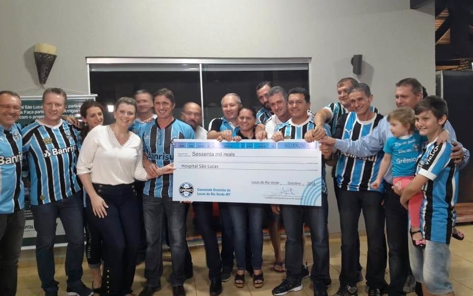 Um cheque de R$ 60 mil reais foi repassado para a direção do Hospital São Lucas, na noite desta segunda-feira, pelo Consulado do Grêmio de Foot Ball Portoalegrense. O recurso é resultado de evento realizado na semana passada, que contou com a Banda Os Atuais, além do ex-jogador do clube gaúcho, Carlos Miguel. O repasse foi realizado em jantar realizado na Chácara Fiagril na noite desta segunda-feira (22).