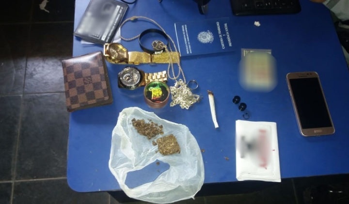 A Policia Militar informou que na busca pessoal ao jogador de futebol foi encontrado um cigarro de maconha, e próximo ao outro suspeito estaria o restante da droga. Diante disso, ambos foram conduzidos à delegacia.