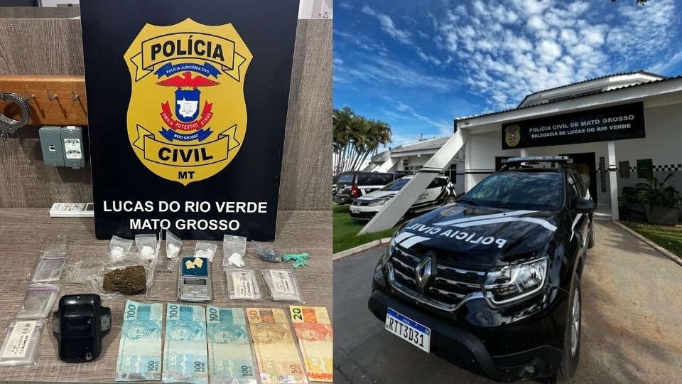 Dois homens foragidos da Justiça foram presos pela Polícia Civil, sendo que um deles, foi autuado em flagrante, em Lucas do Rio Verde em cumprimento de mandado judicial. A primeira prisão aconteceu em uma casa no bairro Veneza. O suspeito de 32 anos foi surpreendido com várias porções de entorpecentes, dinheiro, materiais para embalar drogas, balança de precisão e uma tornozeleira eletrônica.