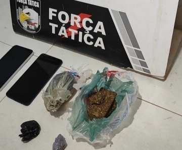 Após o interrogatório, a equipe da Força Tática se deslocou até a casa do acusado, e com a ajuda do irmão do suspeito, que permitiu a entrada dos militares, foi encontrado, 1 porção grande de maconha e mais uma trouxa pequena da mesma substância.