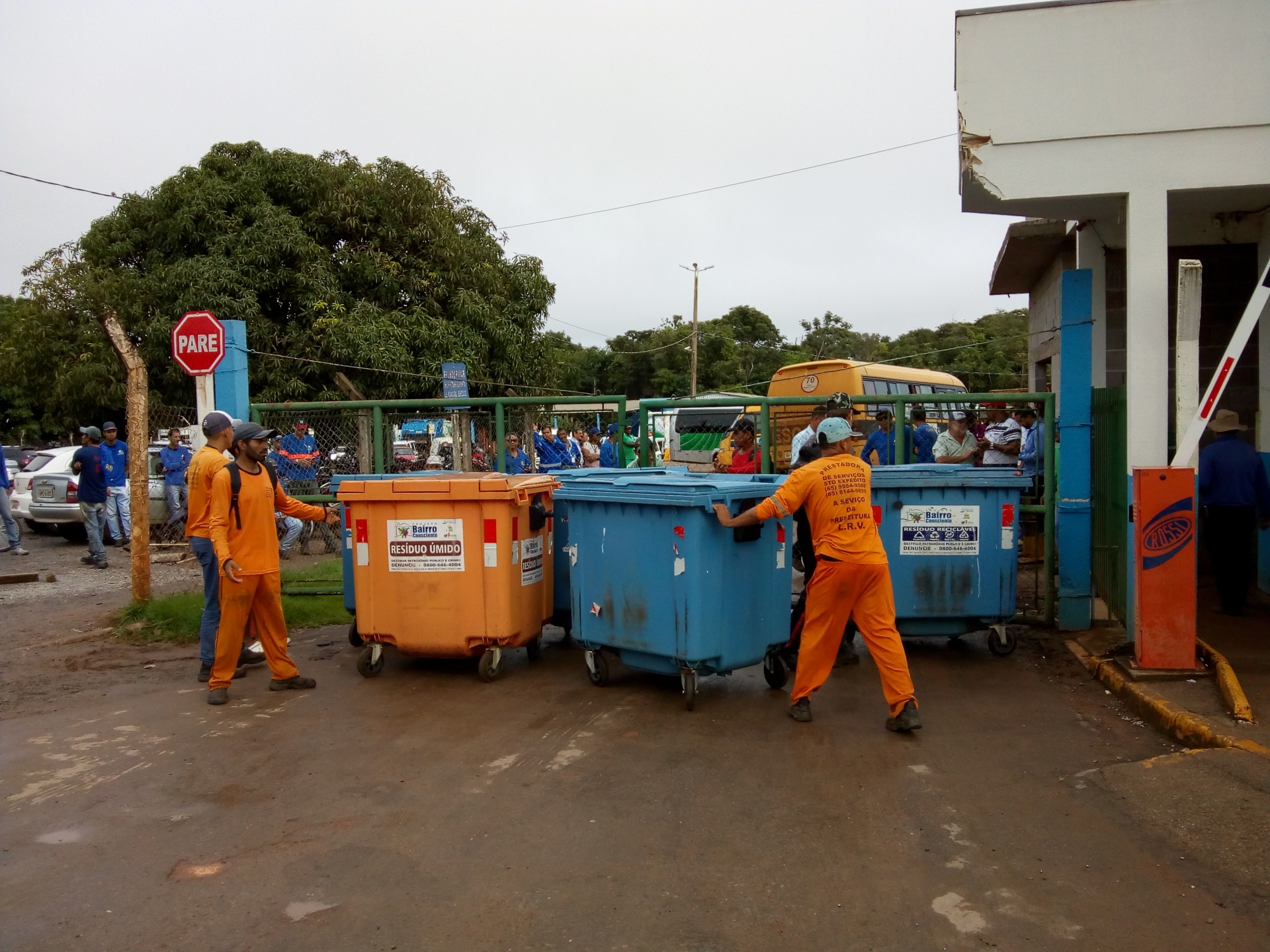 Hoje (11) por volta das 7h da manhã funcionários terceirizados de uma empresa que presta serviço de limpeza urbana (coletores de lixo) e de uma cooperativa que presta serviço de manutenção das vias (como tapa buraco), cruzaram os braços em busca de seus direitos como melhores salários e benefícios.