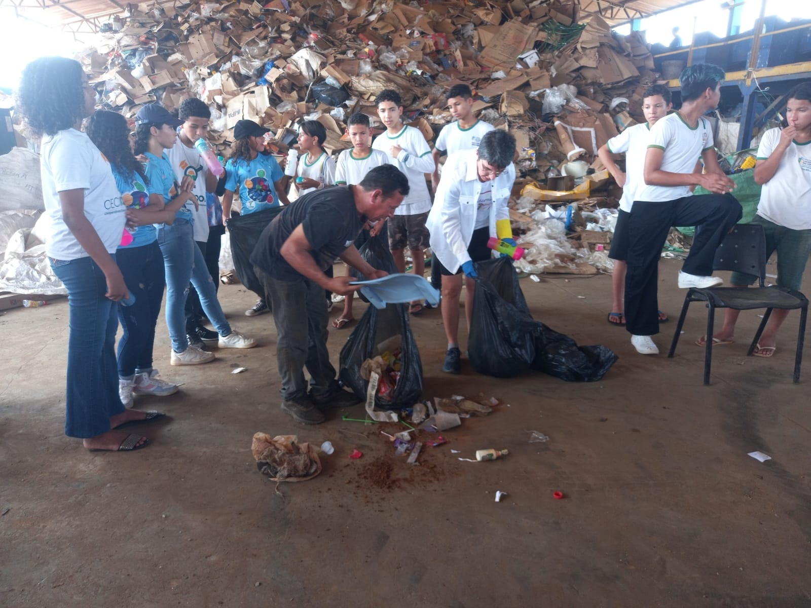 Uma das primeiras ações foi uma visita ao Ecoponto, local onde o lixo reciclável é separado e gera renda a trabalhadores locais. Em seguida, a professora Tania convidou a Fundação Rio Verde para uma palestra, tendo em vista a preocupação com a logística reversa, com a destinação adequada de embalagens de produtos usados nas lavouras. “Foi mostrado aos alunos como que separa, como que vai até a fazenda, ou o sítio ou a plantação. E depois tem que voltar para a Fundação. Foi explicado todo esse passo a passo”, comentou a professora.