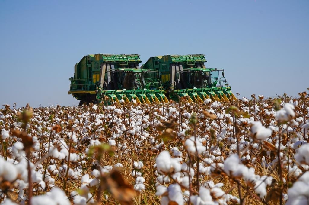 Após a colheita do milho, os produtores de algodão estão em ritmo acelerado para a colheita da cultura que já atingiu cerca de 60,72% da área colhida, a expectativa é de uma produção de mais de 300 arrobas de algodão em carroço por hectare, de acordo com informações do Instituto Mato-Grossense de Economia Agropecuária (IMEA), Mato Grosso plantou cerca de 1.2 milhão de hectares de algodão.