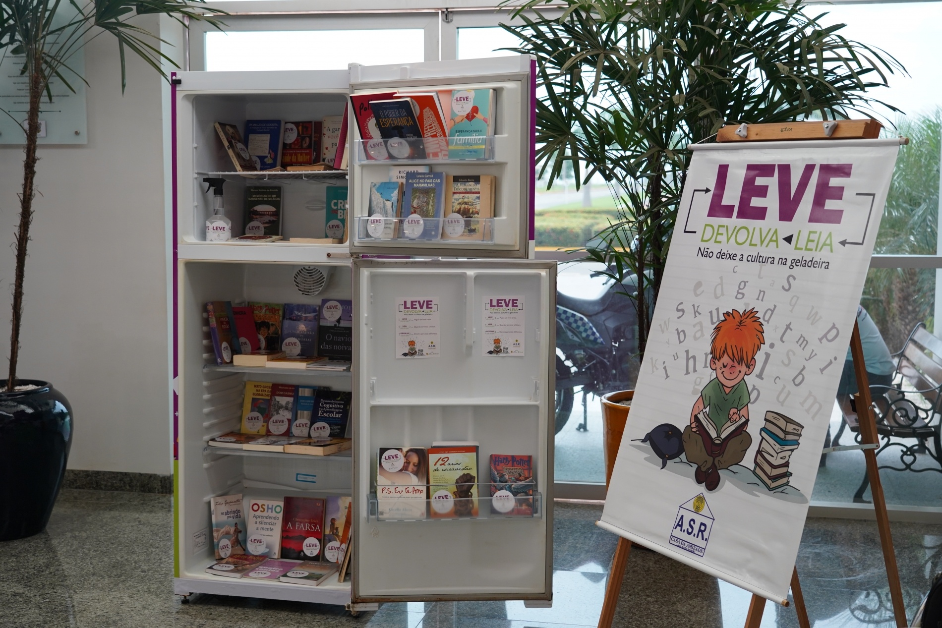 Livros ao alcance de todos! Com o objetivo de incentivar o hábito da leitura, uma geladeira literária foi disponibilizada na recepção do Paço Municipal. A iniciativa faz parte do projeto “Leve, Leia e Devolva”, desenvolvido pela Casa da Amizade, com apoio da Prefeitura de Lucas do Rio Verde, por meio da Secretaria de Cultura.