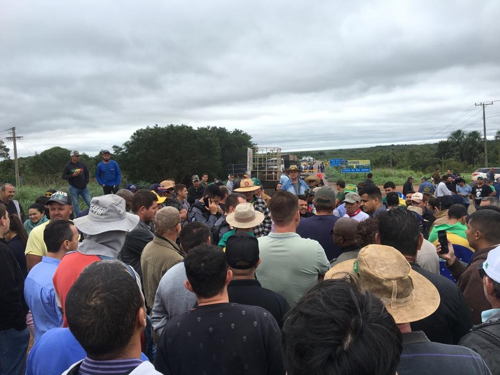 Em Lucas, o ponto de concentração dos manifestantes acontece no km 691 às margens da BR-163, no período urbano. Muitas pessoas estão no local, de forma pacífica, participando da manifestação.