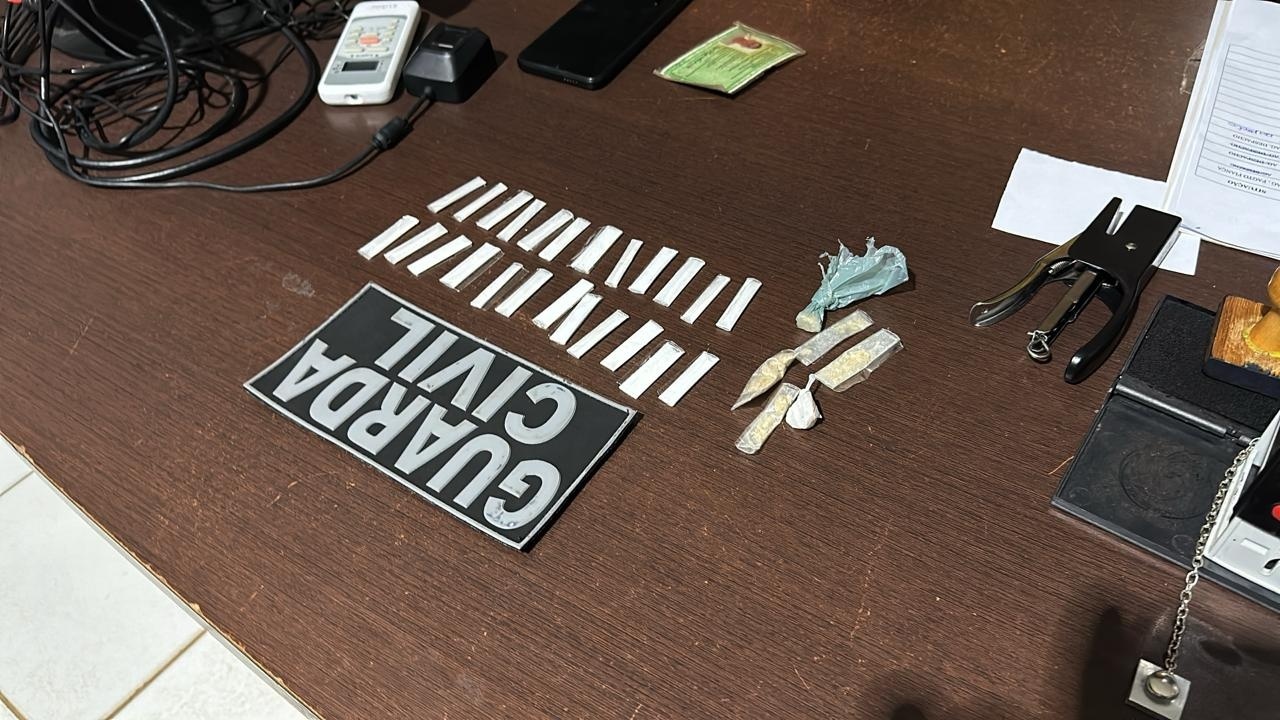 Durante revista, os guardas encontraram uma porção de cocaína no bolso do indivíduo. Quando foi interrogado pela equipe da guarda, ele informou ter comprado os entorpecentes em um estabelecimento comercial na avenida Goiás, próximo ao cemitério, no bairro Veneza.