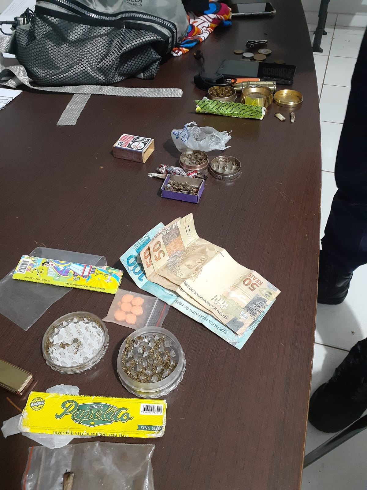 Segundo informações, a moto patrulha estava em rondas pela localidade, quando foram visualizados os três suspeitos em atitude suspeita. Eles foram abordados e com eles foram encontradas porções de maconha e haxixe, além de celulares, pequena quantia em dinheiro e trituradores de drogas. Eles disseram que toda a droga era apenas para consumo próprio.