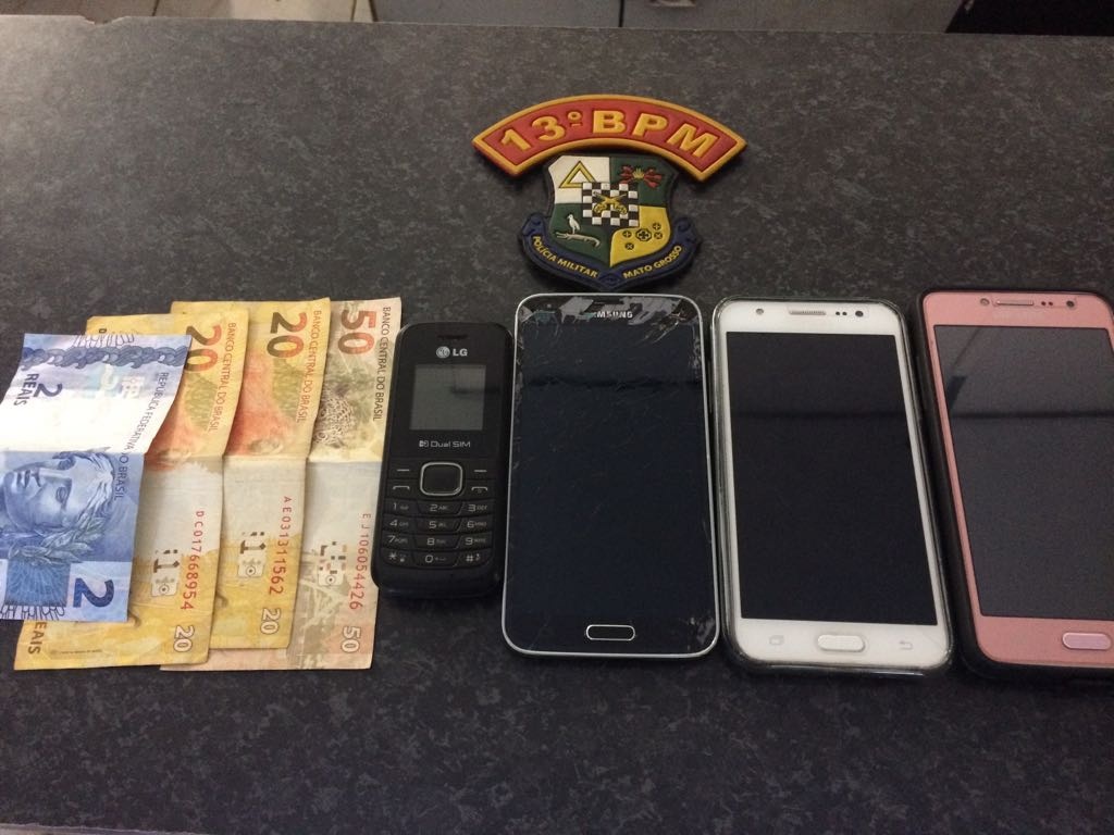 Após ser informada do crime, uma guarnição da PM fez rondas nas proximidades e localizou o suspeito circulando pela Avenida Brasil no bairro Rio Verde. Ele foi abordado e em seu bolso foram localizados alguns aparelhos celulares.