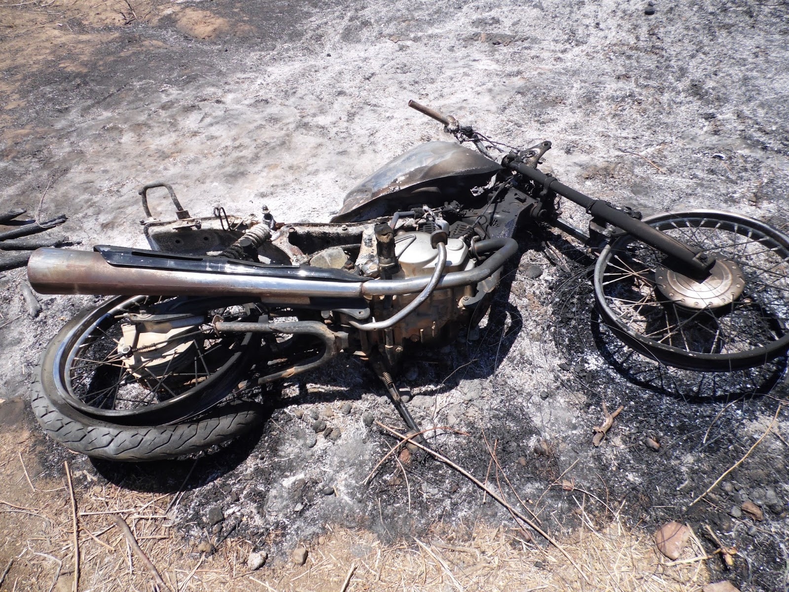 No local, os bombeiros se depararam com uma moto Honda Twister, de cor vermelha e placa QBG-1138, pegando fogo e rapidamente conseguiram apagar as chamas, mas a moto ficou totalmente destruída.