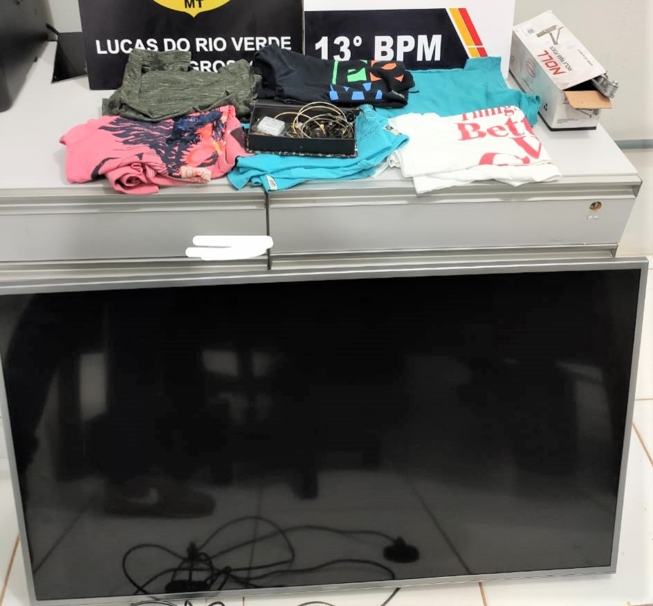 No final da tarde desta terça feira (27), a equipe integrada composta por policiais civis e militares de Lucas do Rio Verde, apreendeu um aparelho de tv 49 polegadas, 01 play station i, 06 camisetas e semi joias e outros objetos, que havia sido furtado de uma residência aqui no município.