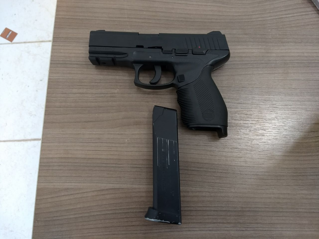 Diante das informações, os PMs se deslocaram até o local informado e encontraram o suspeito com um simulacro de arma de fogo, no interior do estabelecimento comercial.