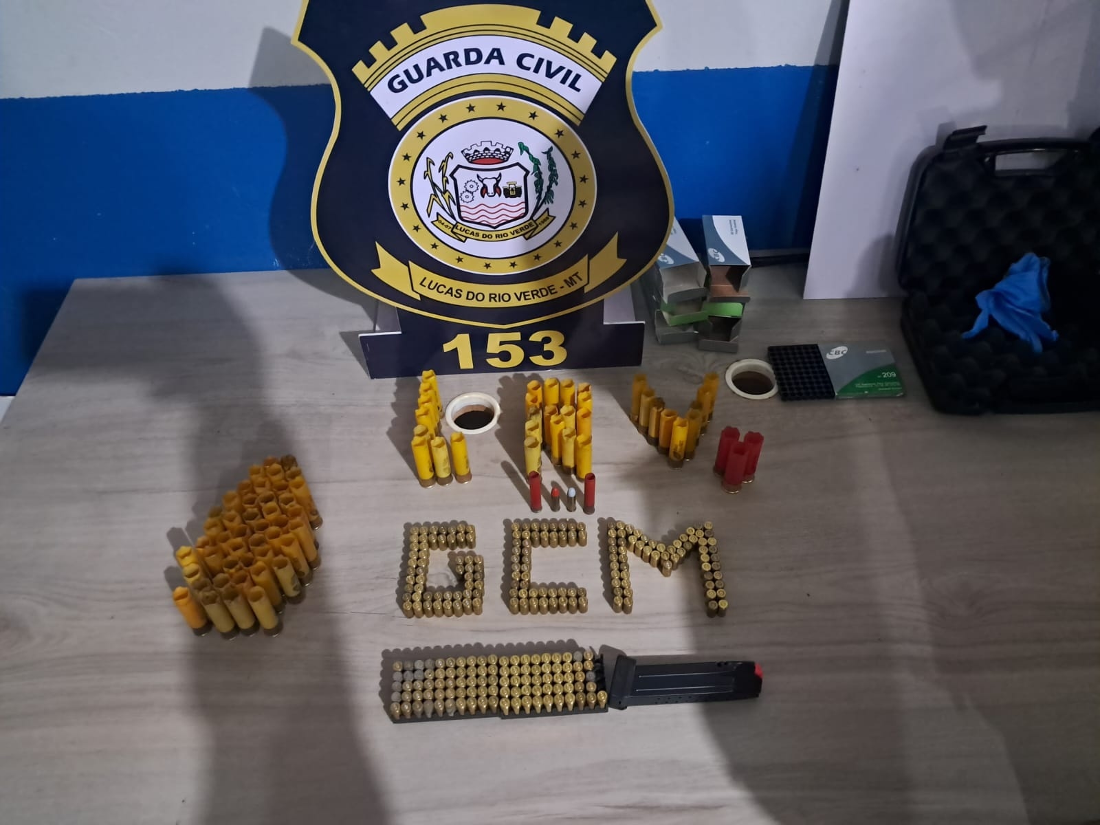 No entanto foram localizados no armário da cozinha 76 cartuchos deflagrados de calibre 20, 3 cartuchos deflagrados de calibre 12, 35 munições de calibre 9 mm, 216 estojos calibre 9 mm deflagradas, 2 munições calibre 38, 2 cartuchos de calibre 16 deflagradas, 1 carregador pistola 9mm e 1 case de pistola. Uma consulta ao sistema integrado de informações constatou que o agressor não possui nenhum registro de armas em seu nome.