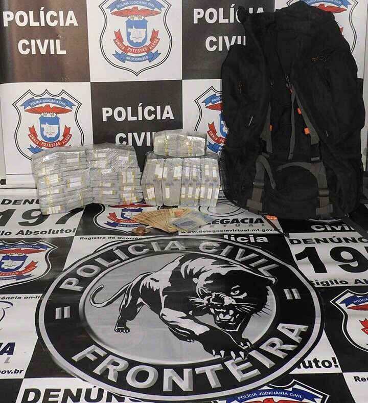 “Após a polícia Civil obter informações que o grupo criminoso, através de 2 mulas do tráfico, utilizando uma motocicleta transportavam o dinheiro para o país vizinho (Bolívia) e que a droga seria transportada ao Brasil através de aeronave (avião), foi realizada diligência pela equipe de policiais civis nas estradas comumente utilizadas pelos traficantes, quando a equipe visualizou 2 indivíduos numa motocicleta, sendo que o garupa levava consigo uma mochila de cor preta, que a visualizarem os policiais a dupla empreendeu fuga entrando numa mata, porém, o garupa foi perseguido e alcançado pelos policiais, ocasião em que arrecadaram aproximadamente US$ 560.000,00 (quinhentos e sessenta mil dólares), em torno de R$ 1.800,000 (um milhão e oitocentos mil reais)”, diz a nota divulgada à imprensa.