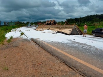 A concessionária que administra a rodovia informou que houve derramamento de parte da carga na faixa de domínio. Uma das pistas precisou ser interditada para preservação do local até a chegada da perícia e foi liberada.