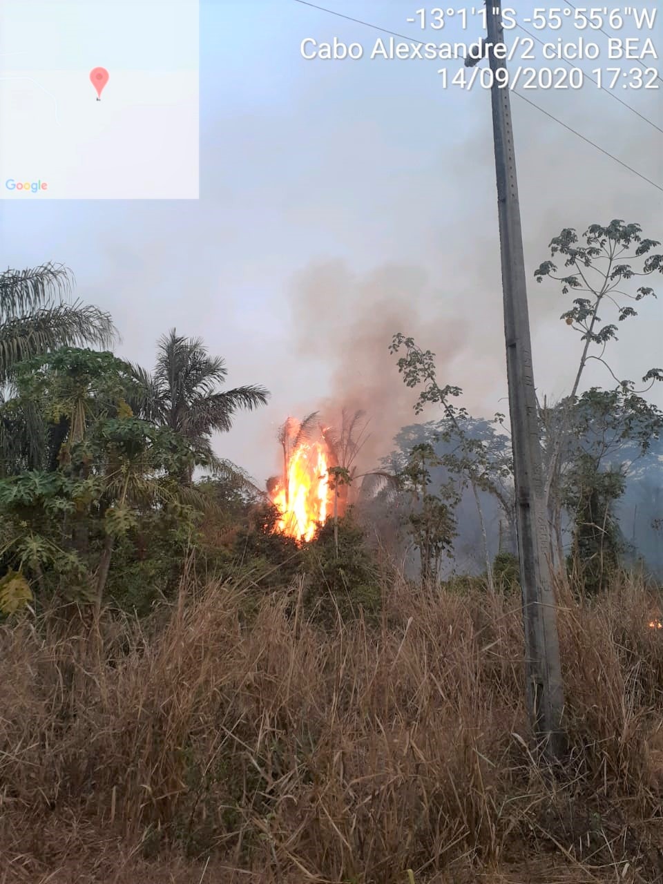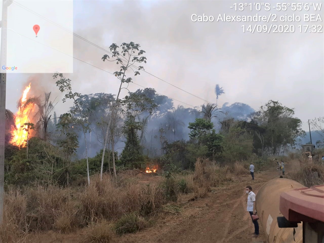 Um incêndio Florestal de grandes proporções atingiu a área verde de uma fazenda próxima a Lucas do Rio Verde, por volta das 16h desta segunda-feira (14). No local, foram realizadas as estratégicas de combates direto e indireto no controle do incêndio, aceiros com tratores, linha húmida com o caminhão de incêndio e caminhões pipa, soprador, e 50 funcionários da fazenda que auxiliaram no combate às chamas.