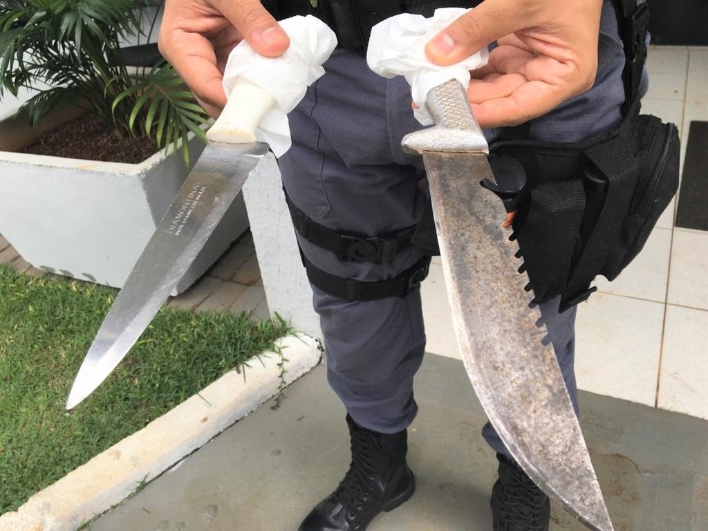 Os policiais avistaram o suspeito (30 anos), nas imediações juntamente com duas facas de grande porte, em cima de uma bicicleta.