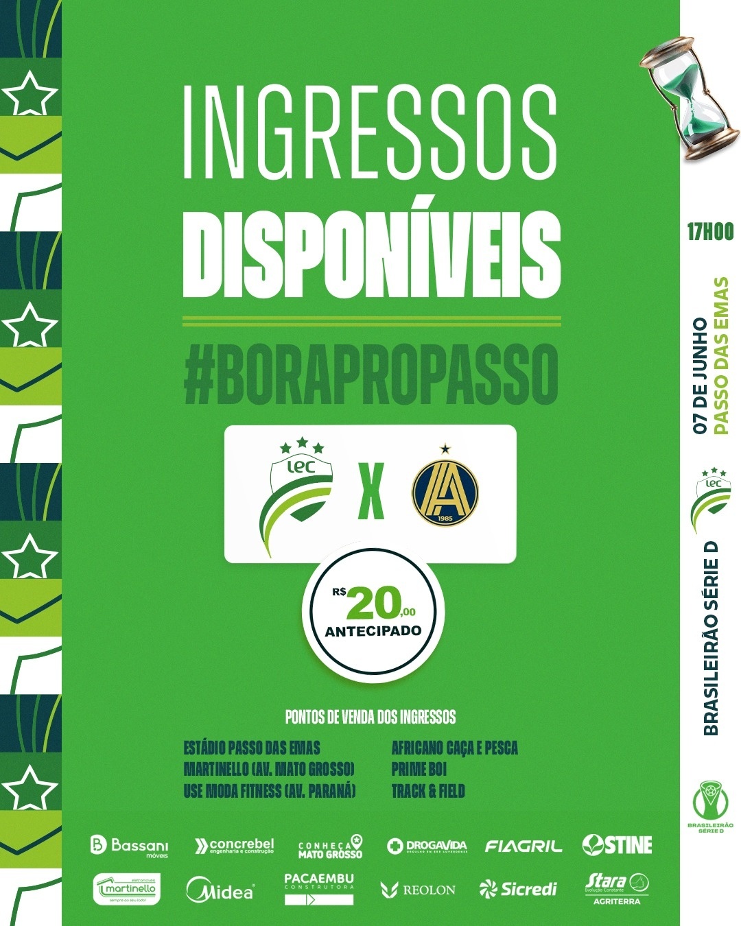 A direção do Luverdense disponibilizou ontem a compra de ingressos por parte dos torcedores de forma online. As entradas disponíveis são para o confronto do próximo sábado, às 17h, contra a Aparecidense de Goiás, no estádio Passo das Emas. A partida, marca a abertura do returno da primeira fase do campeonato brasileiro da série D.