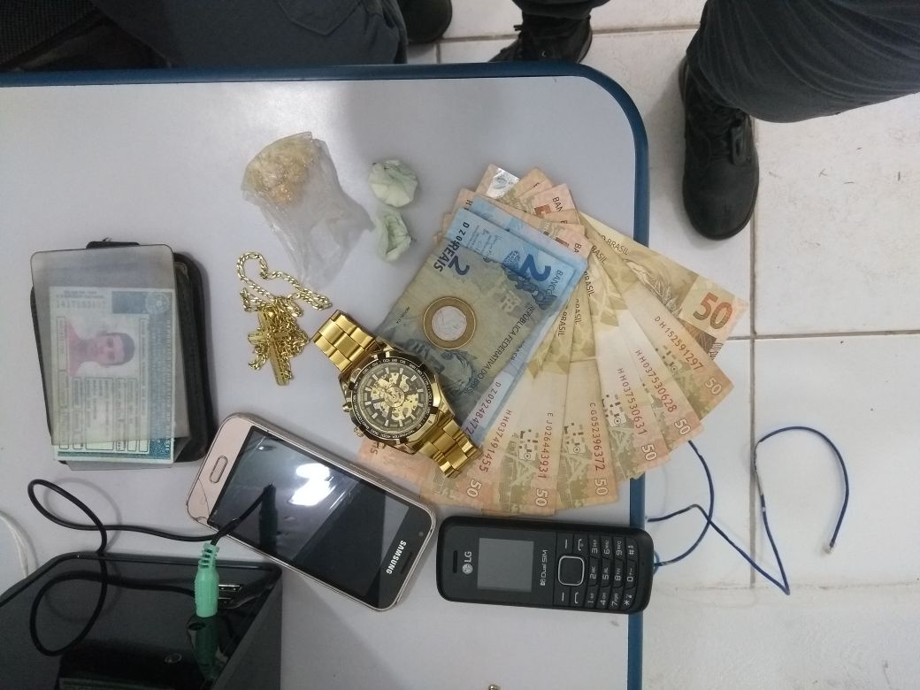 Foi dada a ordem de parada e na abordagem policial, foi encontrado com um dos suspeitos 3 trouxinhas de pasta base, além de R$ 357 em dinheiro.