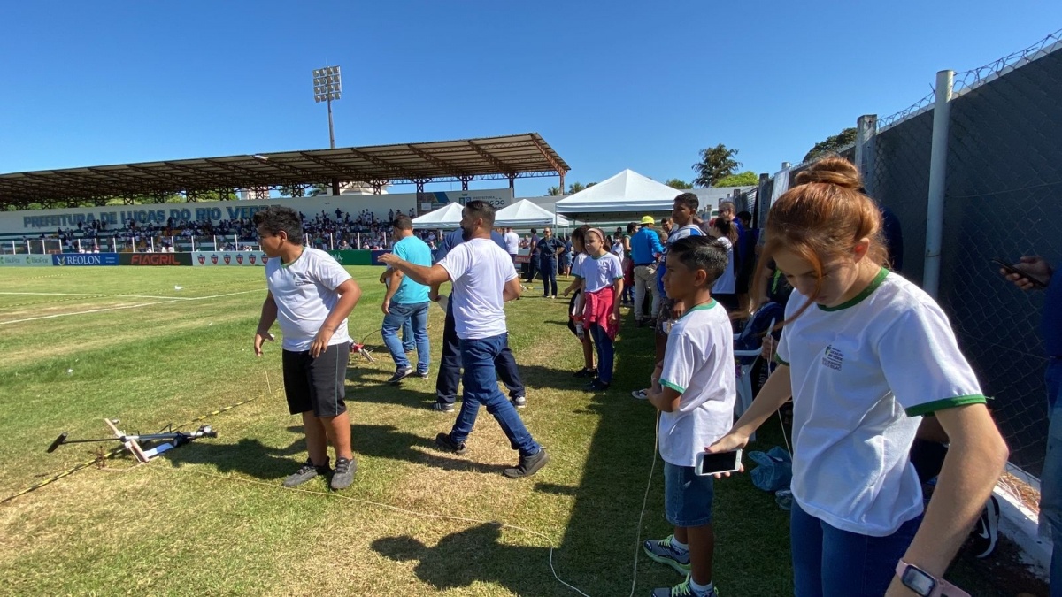 A manhã ensolarada desta sexta-feira (06) foi o cenário perfeito para a 1ª Mostra Municipal de Foguetes, promovida pelos docentes das escolas públicas de Lucas do Rio Verde. Alunos do 1° ao 9° ano aprenderam a construir e lançar foguetes em sala de aula para participar da competição. Antes, os professores participaram de uma capacitação para ensinar os estudantes.