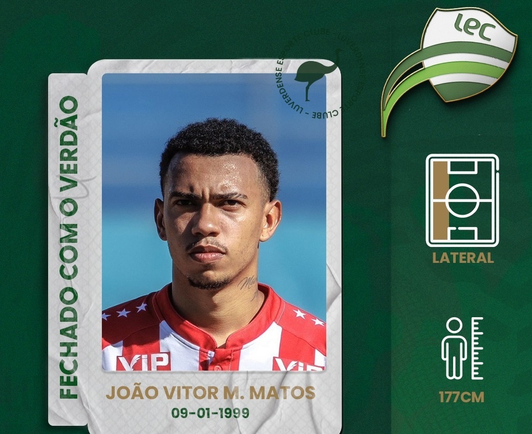 O lateral João Vitor é mais um reforço do Verdão do Norte. O jovem lateral teve seu processo de formação no Fluminense onde permaneceu por quatro temporadas. Na sequência, transferiu-se para a equipe do Avai e chegou a equipe profissional em 2021.