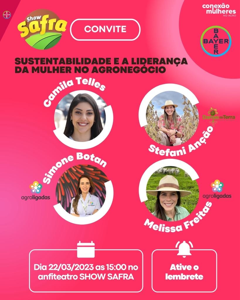 No dia 22 de março, quarta-feira, a partir das 15h00, acontecerá o evento Conexão Mulheres no Agro, que nesta 10ª edição vem com o tema: “Sustentabilidade e a liderança da mulher no agronegócio”.