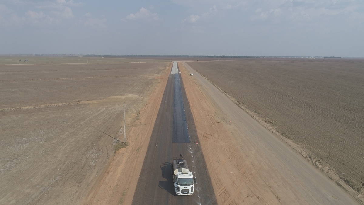 Para a aplicação do revestimento asfáltico, foram feitos 2,3 km de base, além de 2,6 km de sub-base e subleito e 2 km de imprimação (aplicação de material asfáltico sobre a superfície da base concluída).