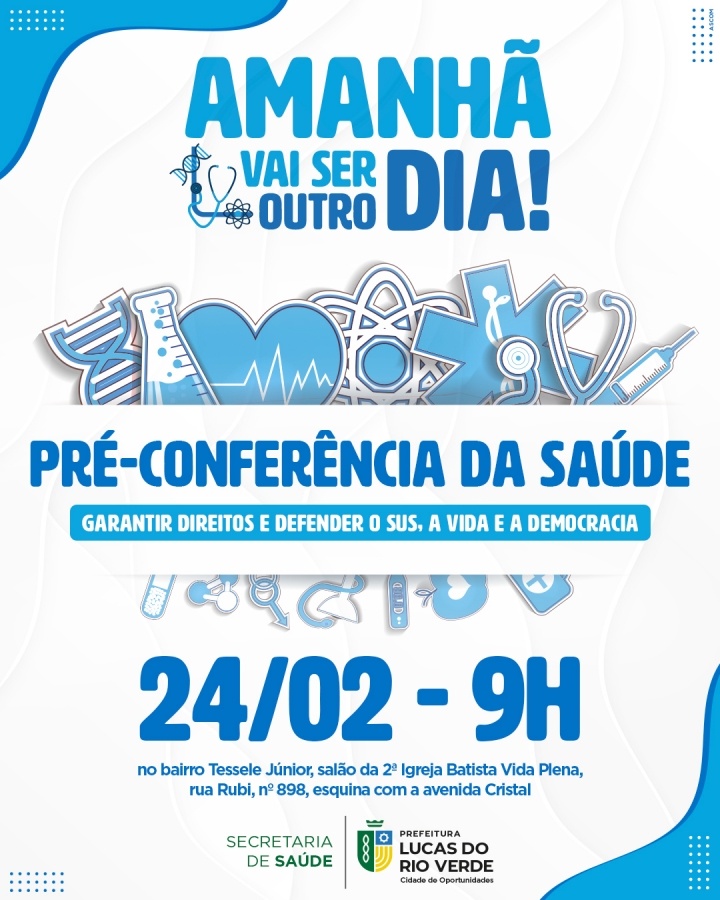 Em março, a Secretaria de Saúde e o Conselho Municipal de Saúde realizarão a 7ª edição do evento em Lucas do Rio Verde. E, uma das etapas da elaboração da Conferência, será a realização de encontros com a população. As chamadas “pré-conferências” têm o objetivo de constituir o conjunto de diretrizes a serem discutidas na Conferência Municipal de Saúde, com a presença de usuários do sistema de saúde, trabalhadores, gestores, prestadores de serviços e representantes de eixos sociais.