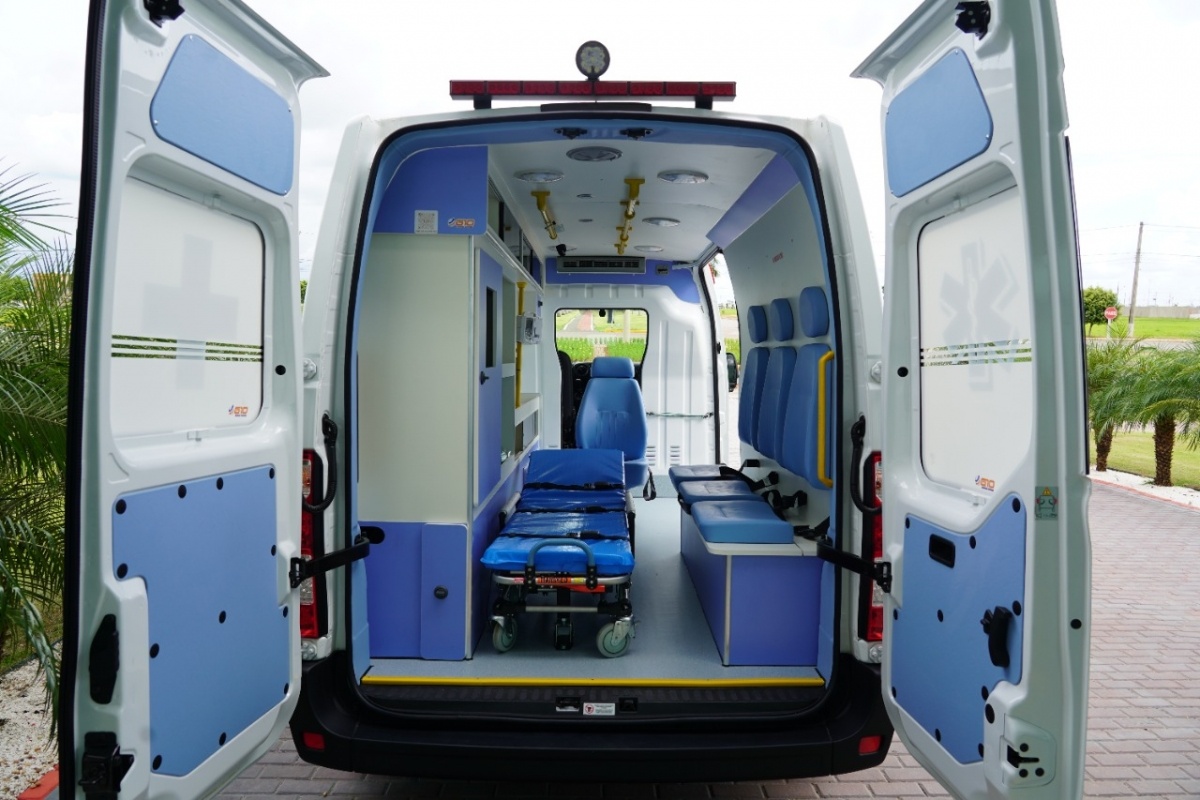 A nova ambulância, equipada com UTI móvel, com suporte avançado para atender a demanda de transporte dos pacientes SUS da Secretaria Municipal de Saúde, conta com monitor cardioversor em MDF, desfibrilador, bomba infusão, oxímetro de pulso e ventilador pulmonar eletrônico.