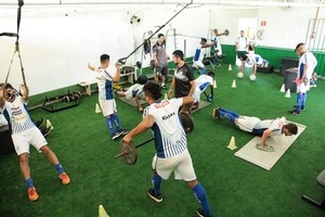 Aproveitando a estrutura da nova academia do clube, a comissão técnica tem realizado treinos funcionais com os atletas.