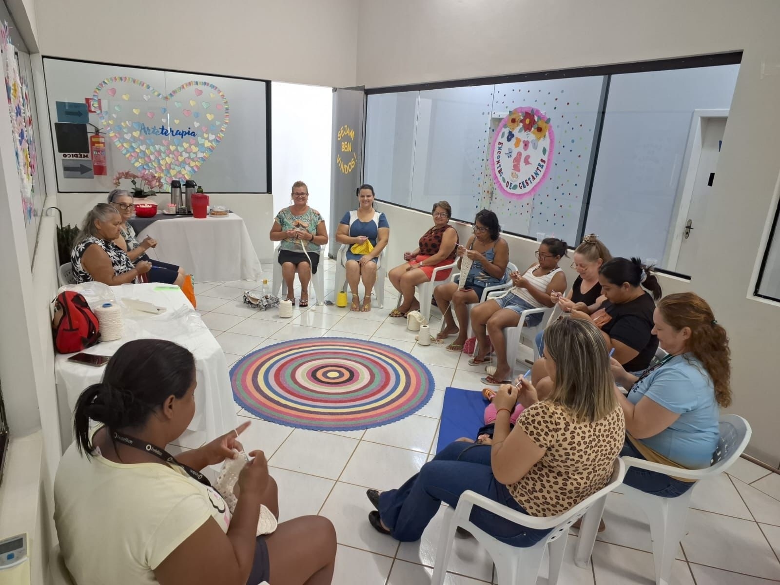 Durante os 32 encontros com gestantes, um total de 128 mulheres receberam orientações sobre os direitos da gestante e do parceiro, importância do pré-natal, aleitamento materno, vacina, introdução alimentar, primeiros cuidados com o recém-nascido e confecções de artesanatos para o bebê como fraldas, mantas e decorações para o quarto.