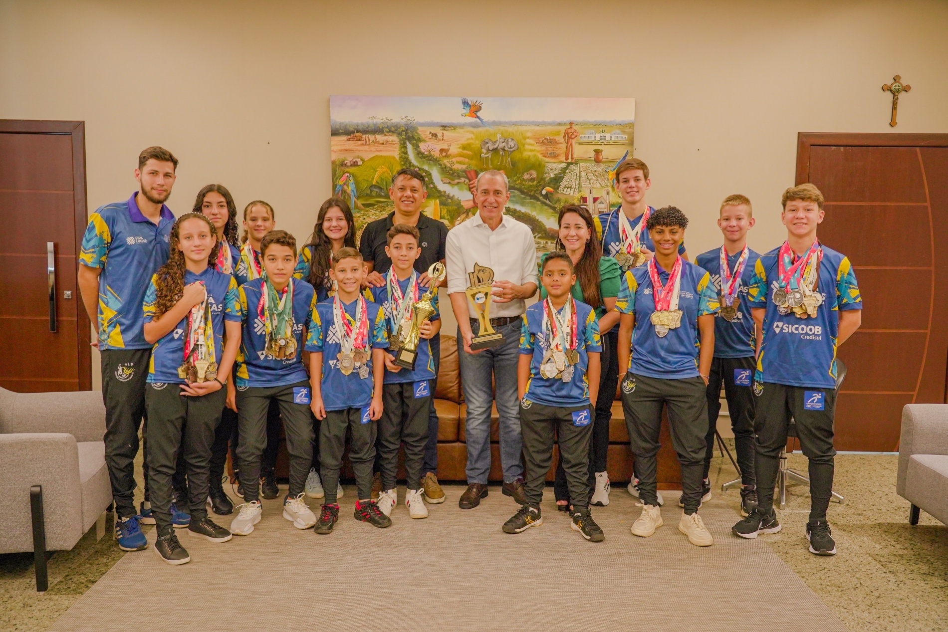Nesta quarta-feira (29), 12 atletas foram recebidos pelo prefeito Miguel Vaz. Eles falaram da experiência de viajar e representar o município e estado, além de dos treinos que acontecem 2 vezes por semana.