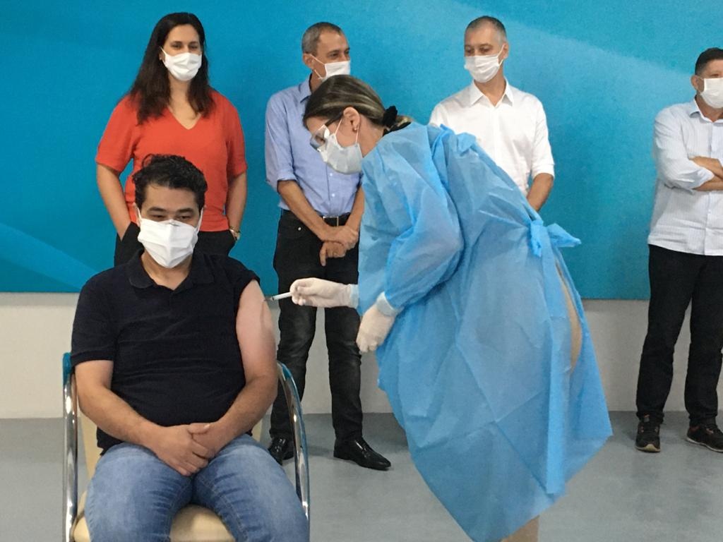 Médico é o primeiro a tomar a vacina da Coronavac em Lucas do Rio Verde