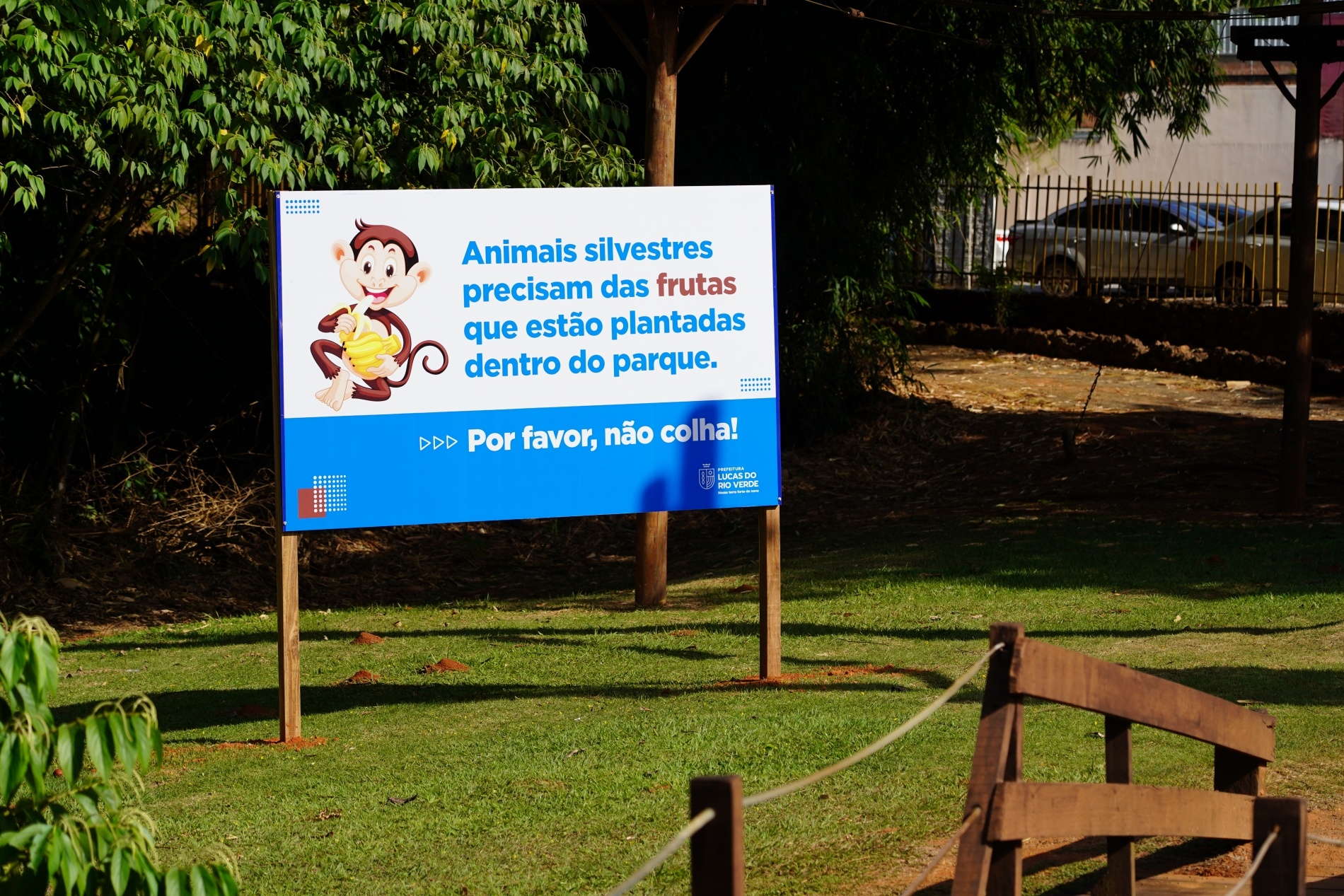 Diversas placas foram instaladas, pela Secretaria de Meio Ambiente, em alguns pontos estratégicos do passeio público de Lucas do Rio Verde para conscientizar a população sobre a alimentação dos animais silvestres que vivem nas áreas de mata e de proteção permanente do município.