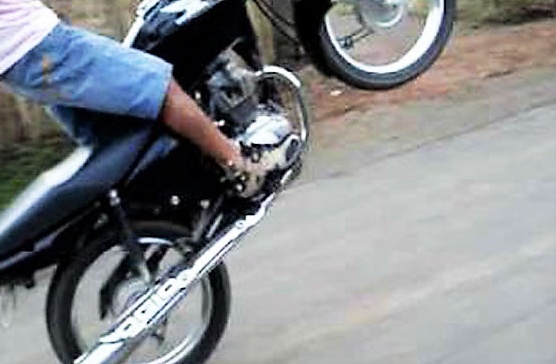 Por volta das 15h da tarde desta terça-feira (03), uma guarnição da PM estava em rondas pela cidade, quando na Rua Sergipe no Jardim das Palmeiras, se deparou com um motociclista em uma moto Yamaha T115 Krypton, fazendo manobras perigosa empinando a moto.