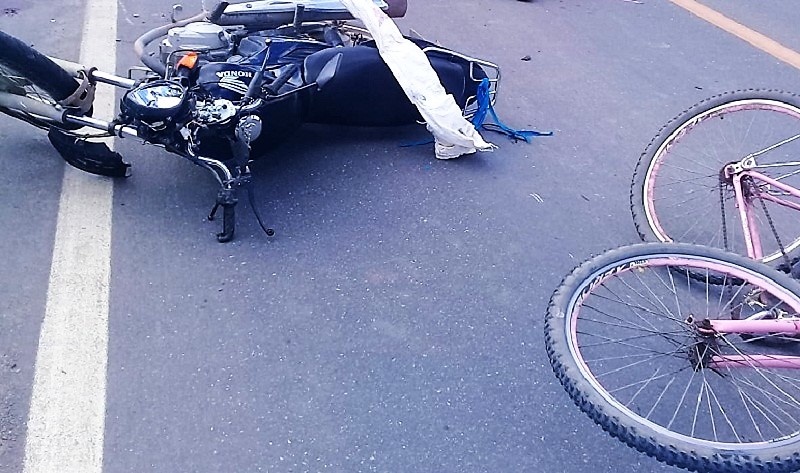 Por volta das 0h40 da madrugada de hoje (14), A Polícia Militar foi informada de que teria ocorrido um acidente de trânsito na Avenida Mato Grosso, onde uma moto Honda Bis de cor vermelha e placa QBF-2075, conduzida por uma mulher de 38 anos, sem habilitação, acabou atropelando uma outra mulher que estava em uma bicicleta trafegando no mesmo sentido à Igreja Rosa Mística.