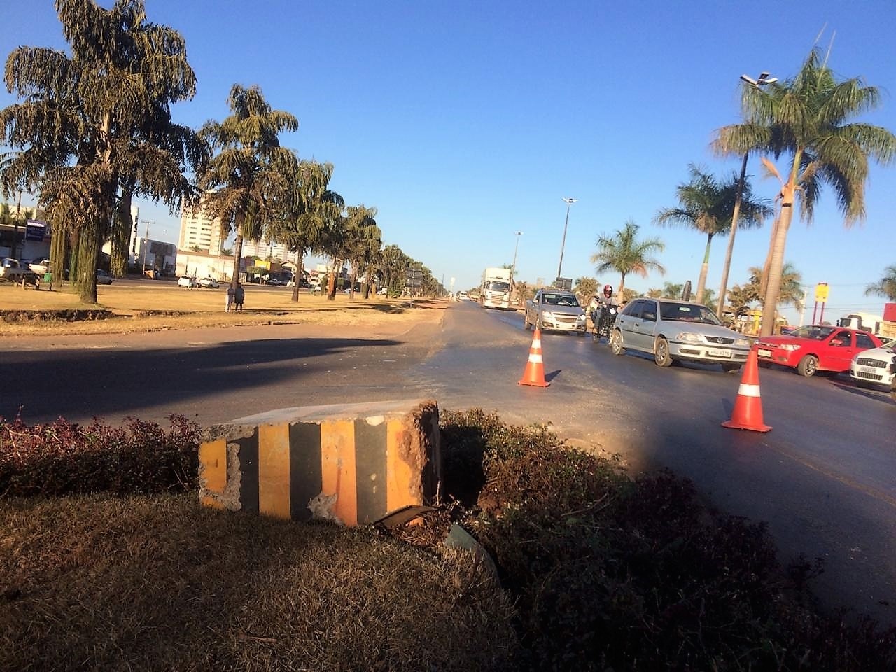 Motorista bate em motociclista e arranca bloco de concreto da BR-163
