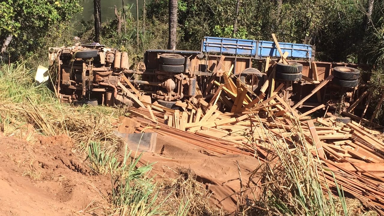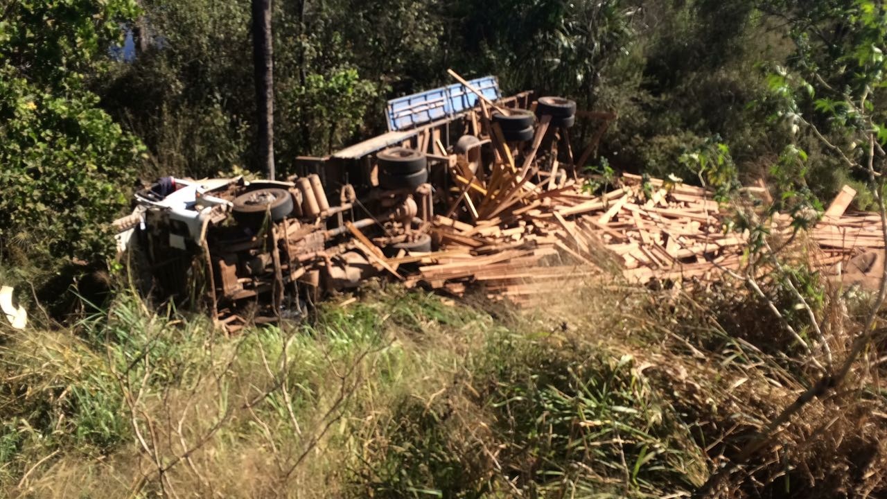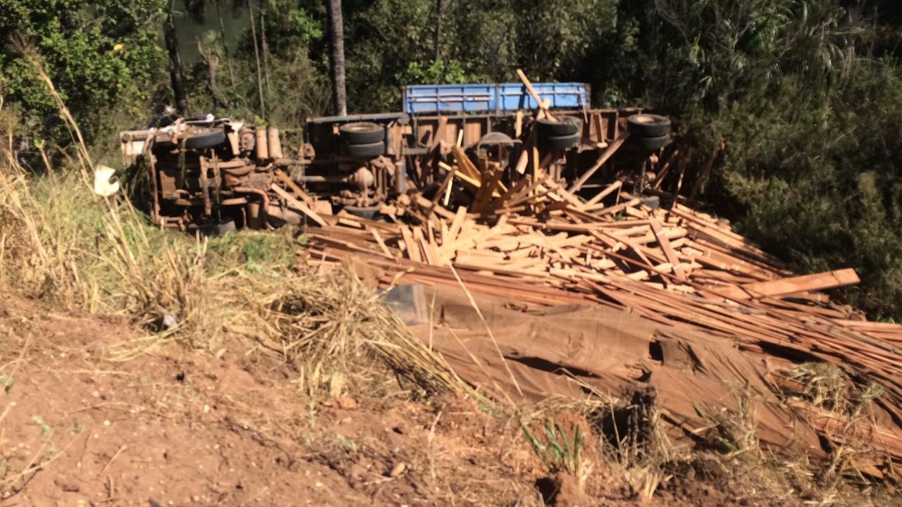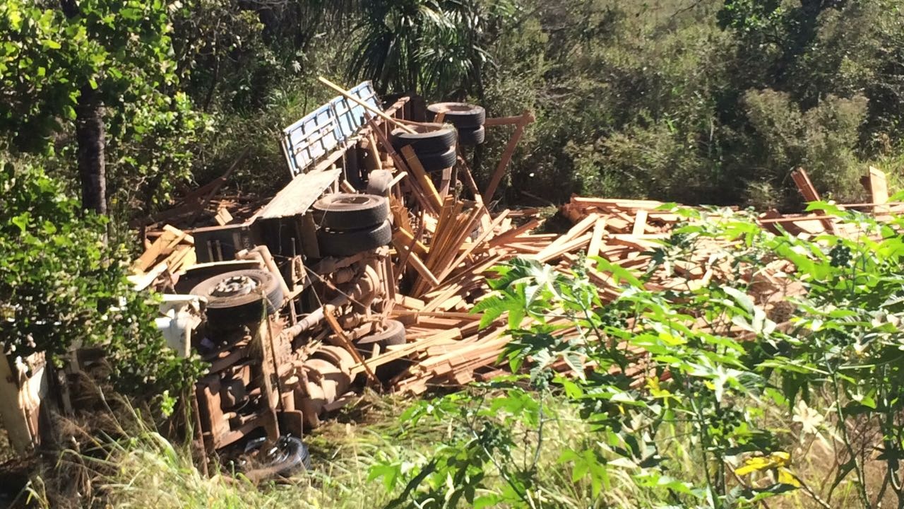 De acordo com informações, um outro caminhão teria parado na pista, fazendo com que o motorista do caminhão carregado com madeira, para não colidir na traseira, realizasse uma manobra brusca.