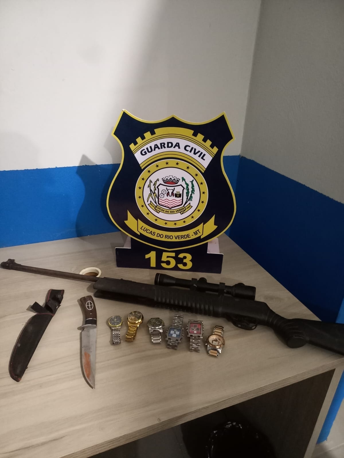Além disso, foram encontradas uma faca de grande porte e sete relógios sem marca registrada nem modelo, que, segundo informações repassadas pelo motorista, teriam sido adquiridos pela internet.