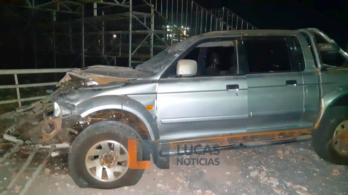 O motorista de uma camionete L-200 de cor prata (com placas de Passo Fundo-RS), bateu e destruiu parte do muro do Estádio Municipal Passo das Emas, na noite deste domingo (19) e o veículo foi parar dento do estádio próximo ao alambrado.