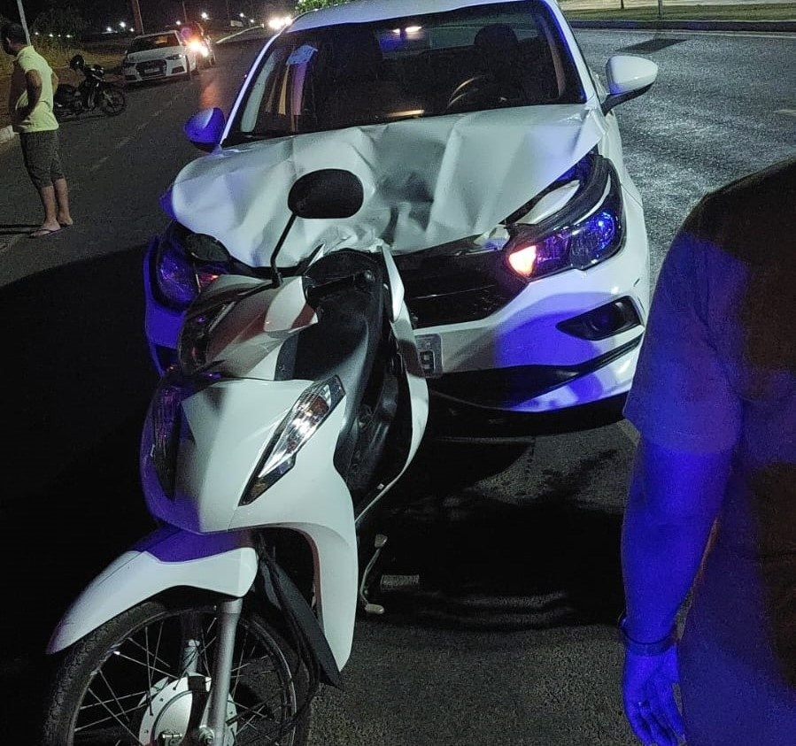 Uma moto Honda Biz branca, trafegava pela avenida das Nações, sentido bairro das Américas, quando foi atingida violentamente na parte traseira por um veículo que vinha em alta velocidade.