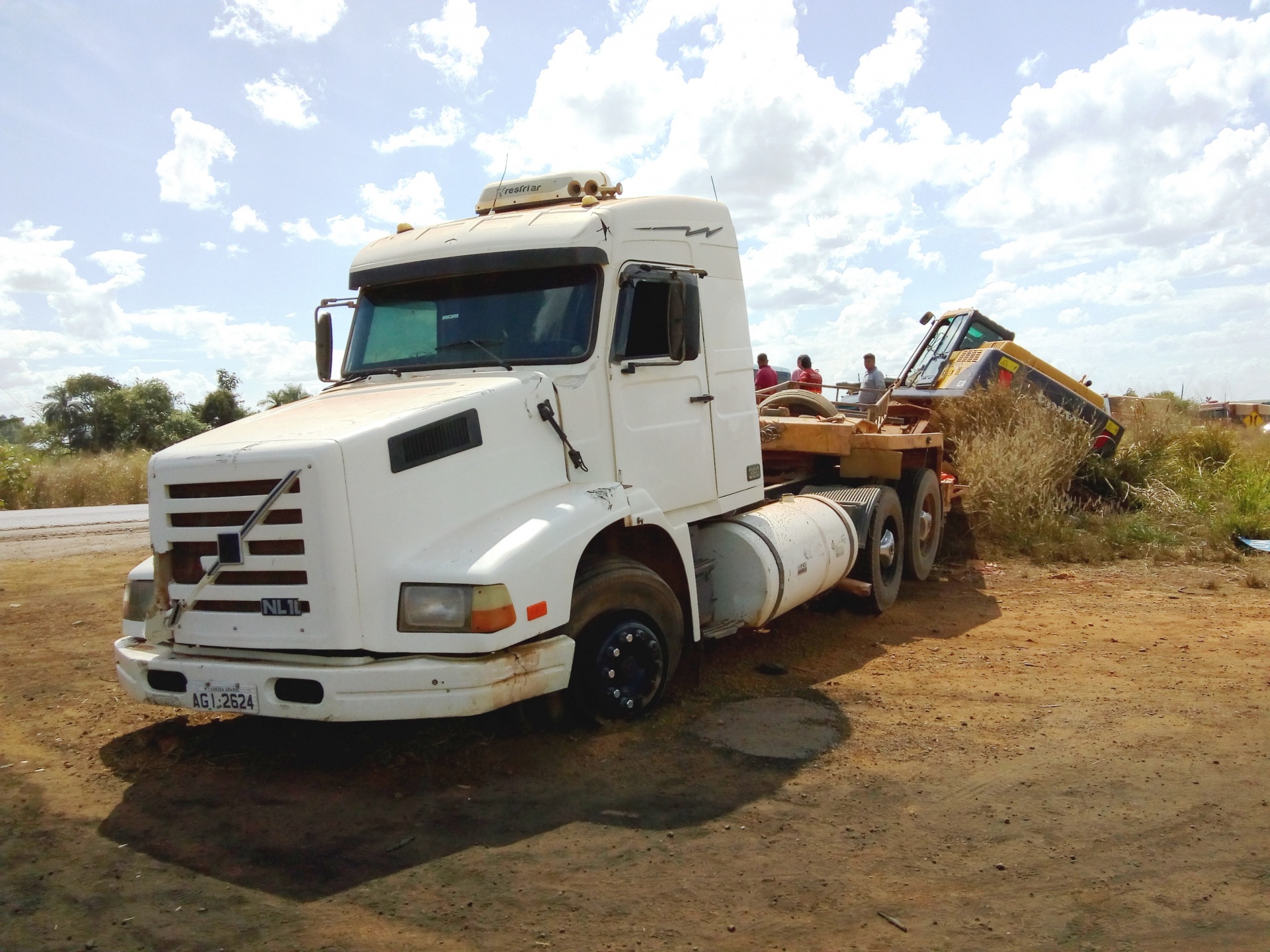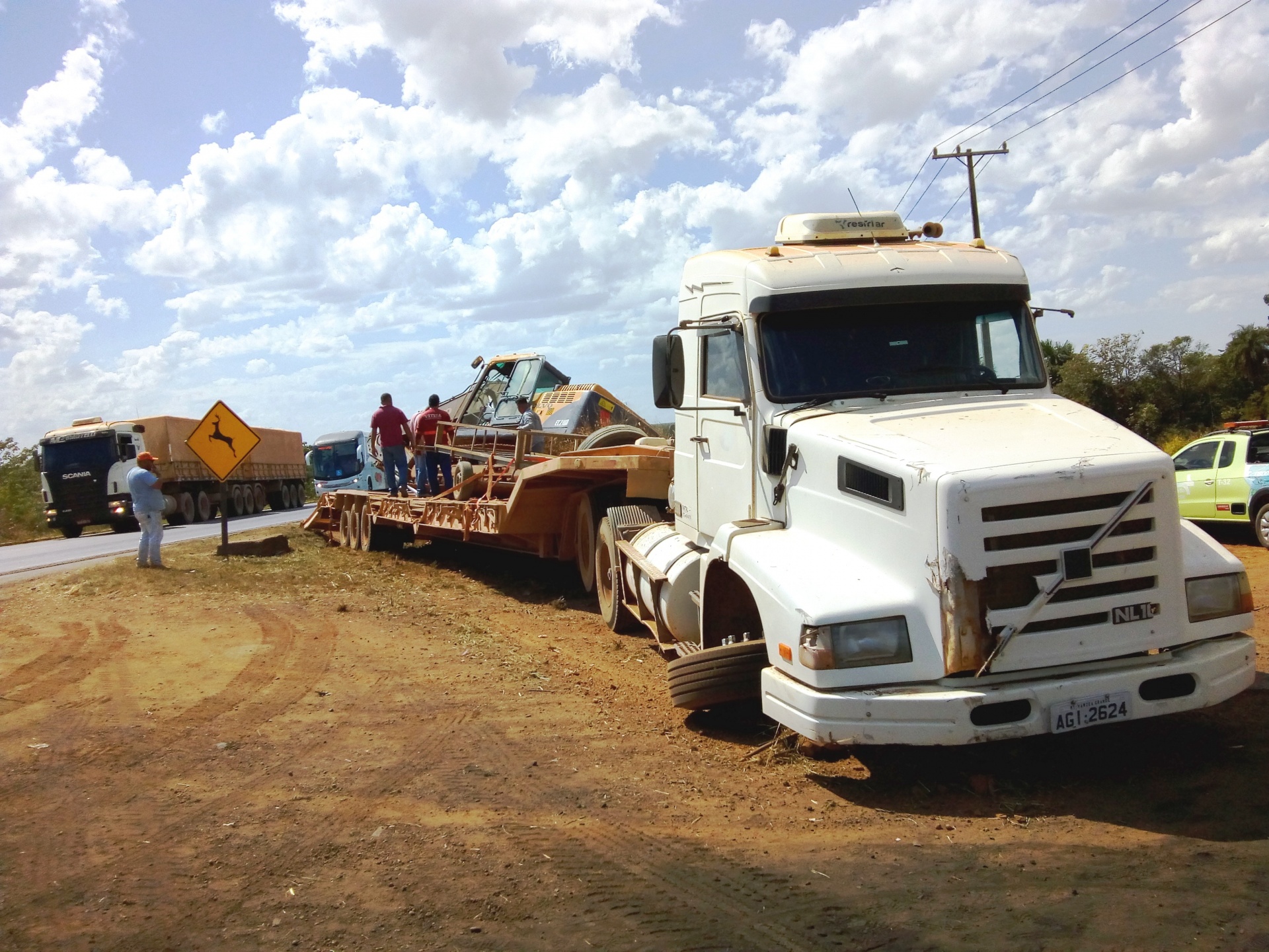 Segundo informações colhidas no local, o motorista da carreta Volvo NL 10 360 branca, placas de Várzea Grande-MT, seguia sentido sul e o veículo da frente parou bruscamente. Para evitar a colisão, o motorista saiu de pista e parou sobre a faixa de domínio, tombando a pá carregadeira que transportava.