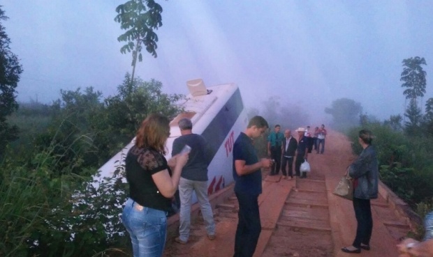 Motorista perde controle, ônibus quase despenca em rio em MT