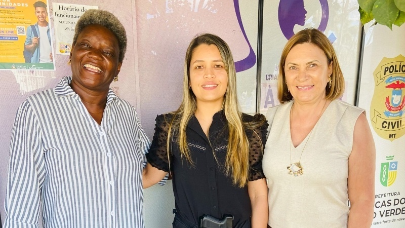 Na tarde desta quarta-feira (06), a primeira-dama e secretária de Assistência Social e Habitação de Lucas do Rio Verde, Janice Ribeiro, e a Vereadora Débora Carneiro, visitaram o Núcleo de Atendimento à Mulher, onde foram recebidas pela nova delegada titular da Polícia Civil, Dra. Paula de Fátima Moreira. A visita marca o início de uma importante parceria no fortalecimento da rede de enfrentamento à violência contra a mulher no município.