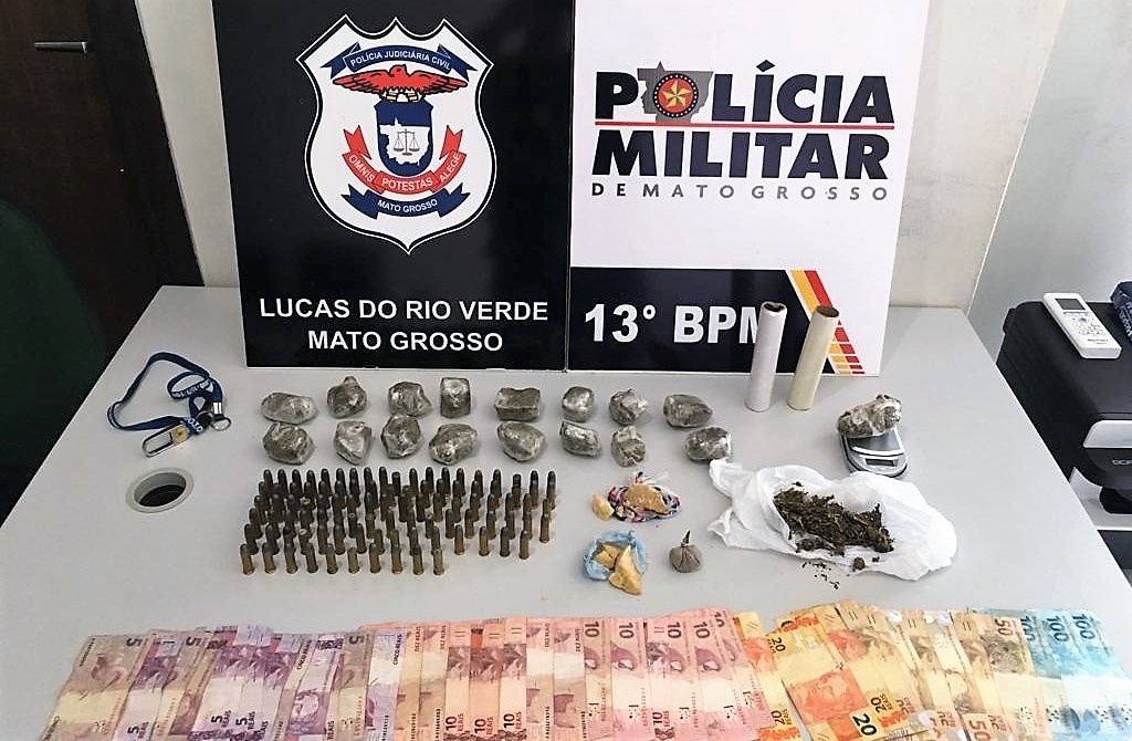 Por conta de denúncias anônimas, a Polícia Civil de Lucas do Rio Verde durante três realizou investigações onde se chegou a pessoas que estavam traficando drogas. Até que na tarde desta quarta-feira (13), conseguiu apreender uma grande quantidade de maconha, balança de precisão, dinheiro trocado e também de munições de arma de fogo. Um homem foi preso e um menor de idade apreendido.