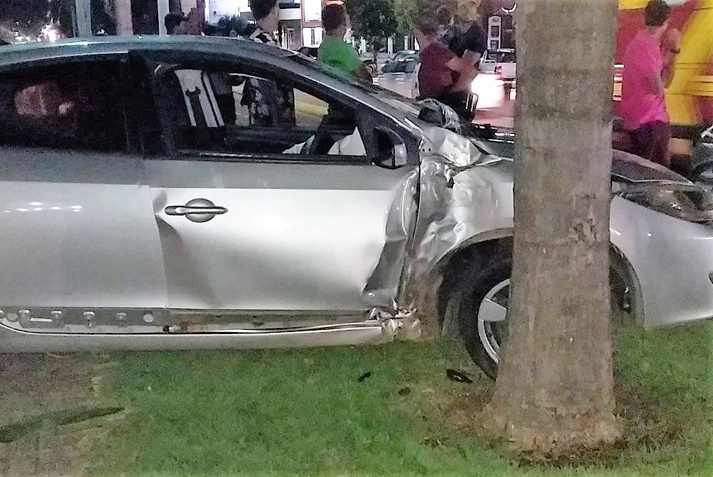 Quando a guarnição estava a caminho da ocorrência, foi informada que o carro teria continuado as manobras e seu motorista perdido a direção se chocando contra um arbusto, que fica no meio do canteiro central da avenida.
