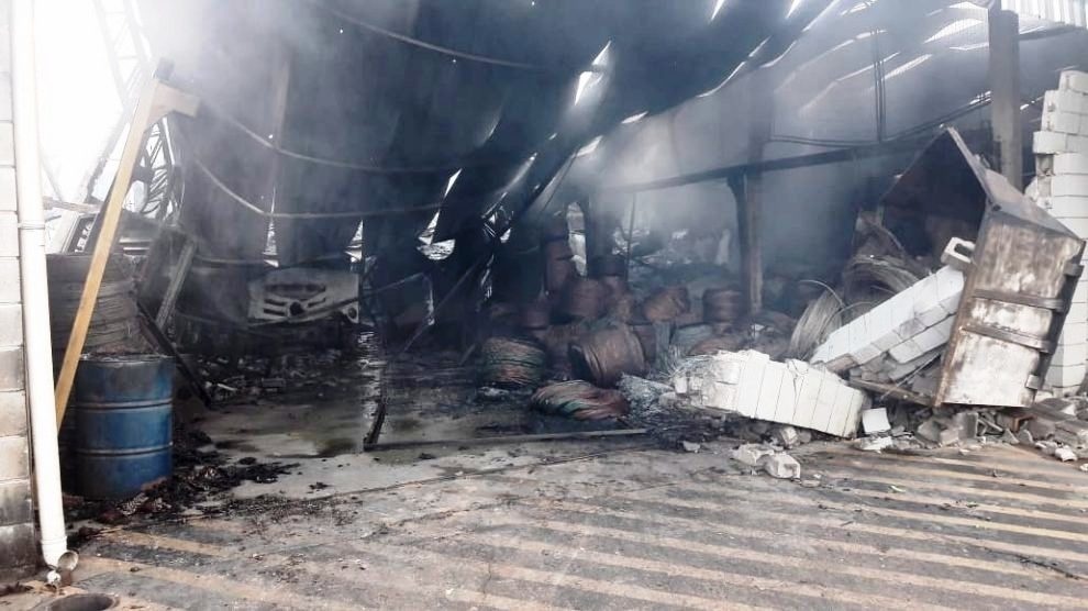 Ontem, a principal preocupação do Corpo de Bombeiros era com a possibilidade de desabamento de algumas paredes com rachaduras. Todo o efetivo trabalhou intensamente com voluntários para acabar com o fogo e evitar que se alastrasse. Houve momentos de muita tensão até as chamas serem debeladas porque, muito próximo da empresa, há um posto de combustíveis.