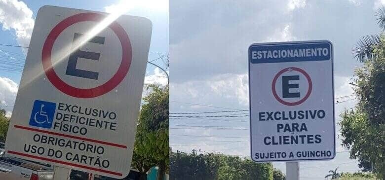 Placas de estacionamento para idosos e deficientes são adulteradas em rua de Lucas do Rio Verde