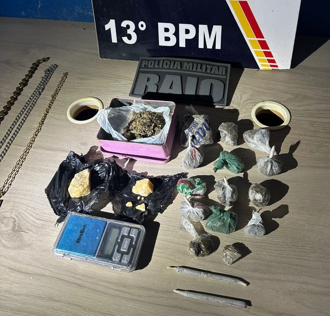 De acordo com o boletim policial, durante ações de patrulhamento, os militares perceberam que um jovem correu ao avistar as motocicletas da equipe. Diante da atitude suspeita, os policiais realizaram acompanhamento e abordaram o rapaz, identificado como um menor de idade. Na busca pessoal, foi encontrada uma pedra de substância análoga à pasta base de cocaína no interior de sua roupa.