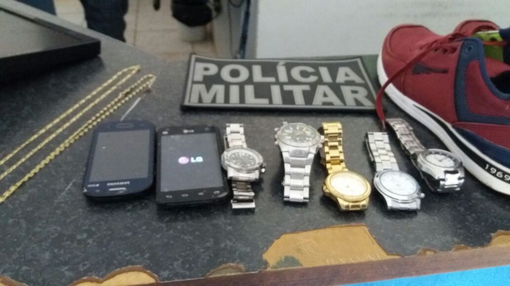 Na quitinete onde os suspeitos moram, a PM localizou documentos de várias pessoas, relógios, calçados, aparelhos celulares, quatro monitores de computador e um Datashow. Esses últimos eletrônicos apresentam etiquetas da Secretária de Estado de Educação.