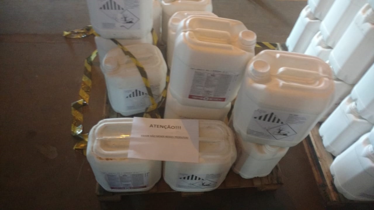 De acordo com o verificado, na nota fiscal estavam descritos galões de 05 litros, porém no local foram encontrados galões de 20 litros. Ao todo foram apreendidos 2 mil litros de defensivo Fox Bayer, com valor aproximado de R$ 240 por litro.